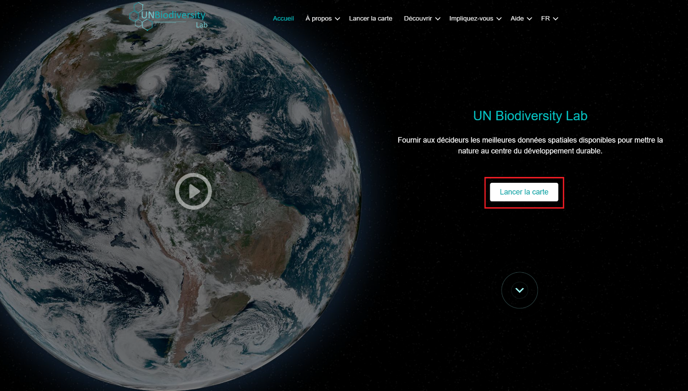 Pour accéder à l'application cartographique depuis le site web du UN Biodiversity Lab, cliquez sur « Launch map » (Lancer la carte).