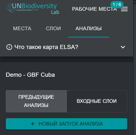 Пользователи не могут создавать или редактировать конфигурации инструментов ELSA. Они могут только создавать или редактировать запуски анализа в рамках конфигурации инструмента ELSA. Чтобы запросить конфигурацию инструмента ELSA для конкретной страны, обратитесь по адресу support@unbiodiversitylab.org.