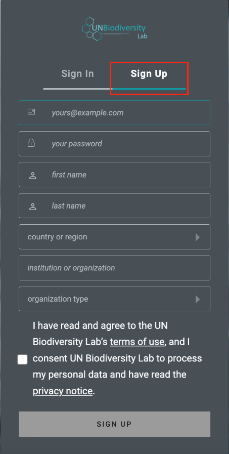 Before you begin exploring the maps, register for the UN Biodiversity Lab.